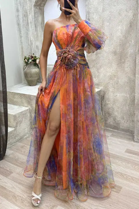 Dieses romantische Blumenkleid besticht durch seine feminine Silhouette und die raffinierten Details. Die stilvollen Verzierungen und der schmeichelhafte Schnitt machen es zu einem echten Hingucker.