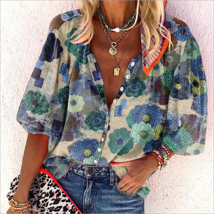 Lassen Sie sich in diesem Sommer mit unserer bedruckten Bluse im Bohème-Stil von einem lässigen und charaktervollen Stil verzaubern. Sie lässt sich perfekt mit Ihrer Lieblingsjeans oder einem koketten Rock kombinieren und erlaubt es Ihnen, die Sonne mit all der Freiheit zu genießen, die Sie sich wünschen. Das locker sitzende Design und der leichte Stoff machen sie zu einer beliebten Wahl für Frauen in Spanien, die Komfort, Farbe und Authentizität in einem Outfit suchen.