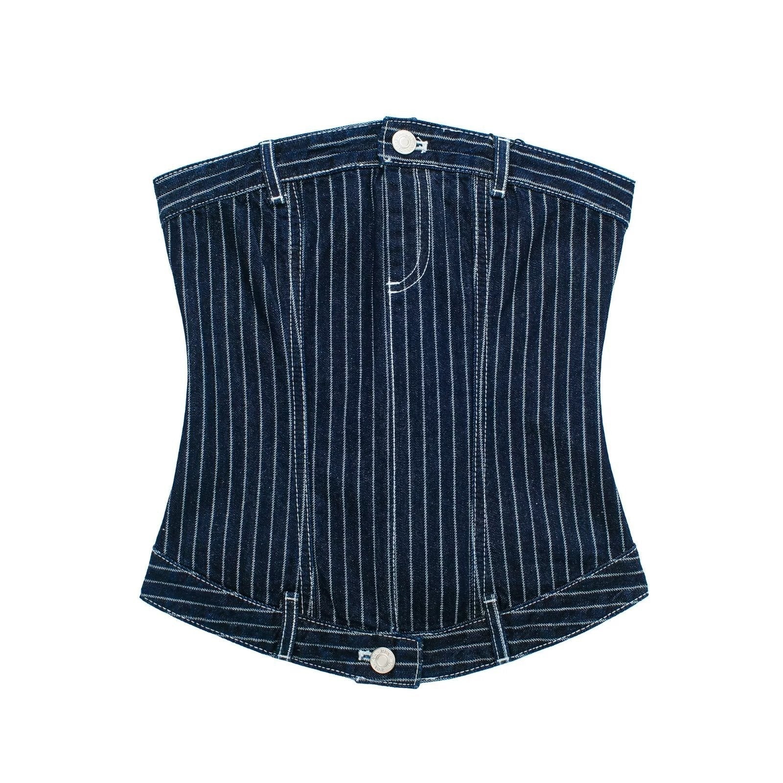 Alva - Gestreiftes Denim Crop-Top mit integriertem BH
