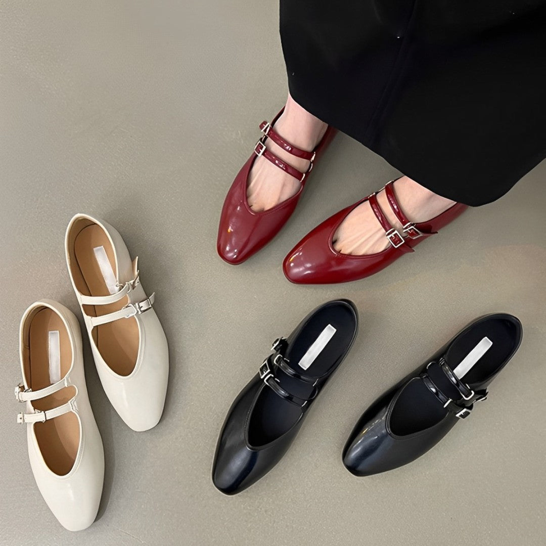 Alva - Retro PU-Schuhe mit Schnallenverschluss