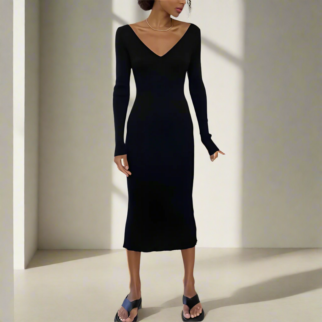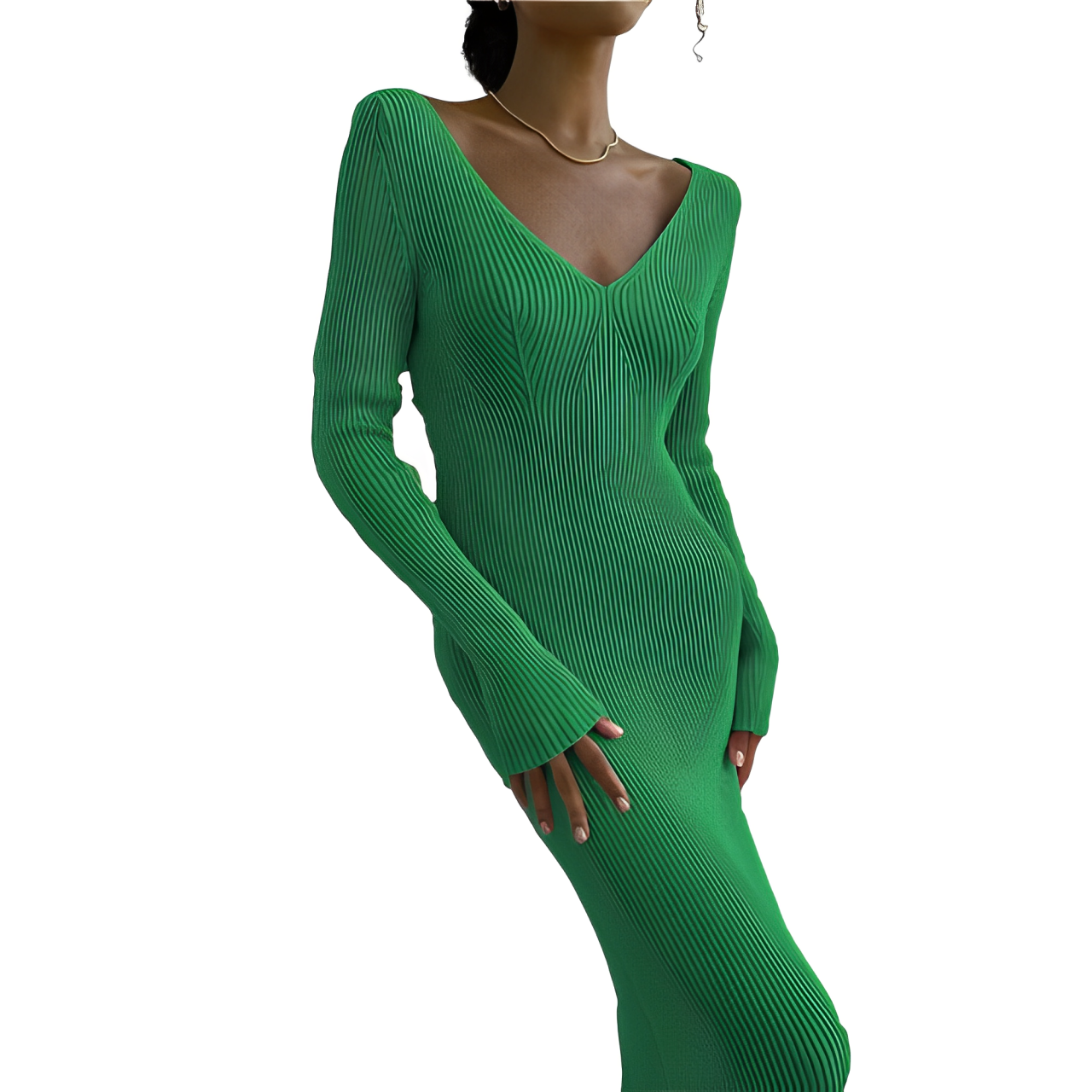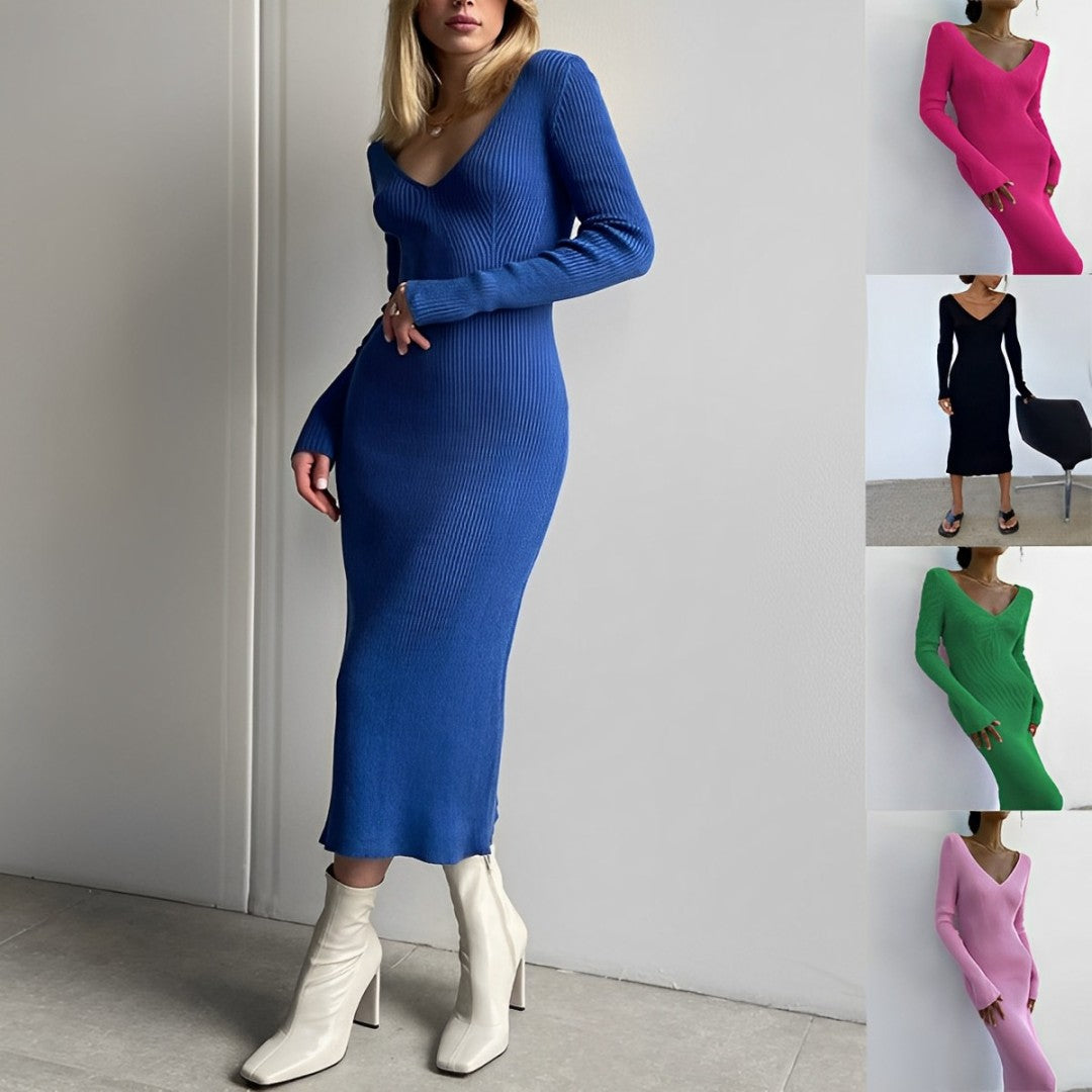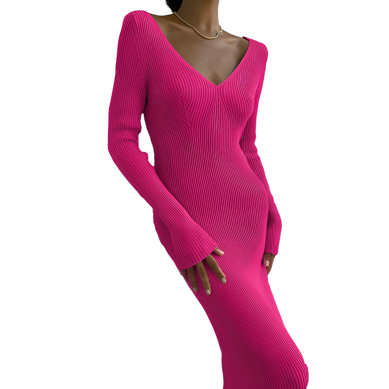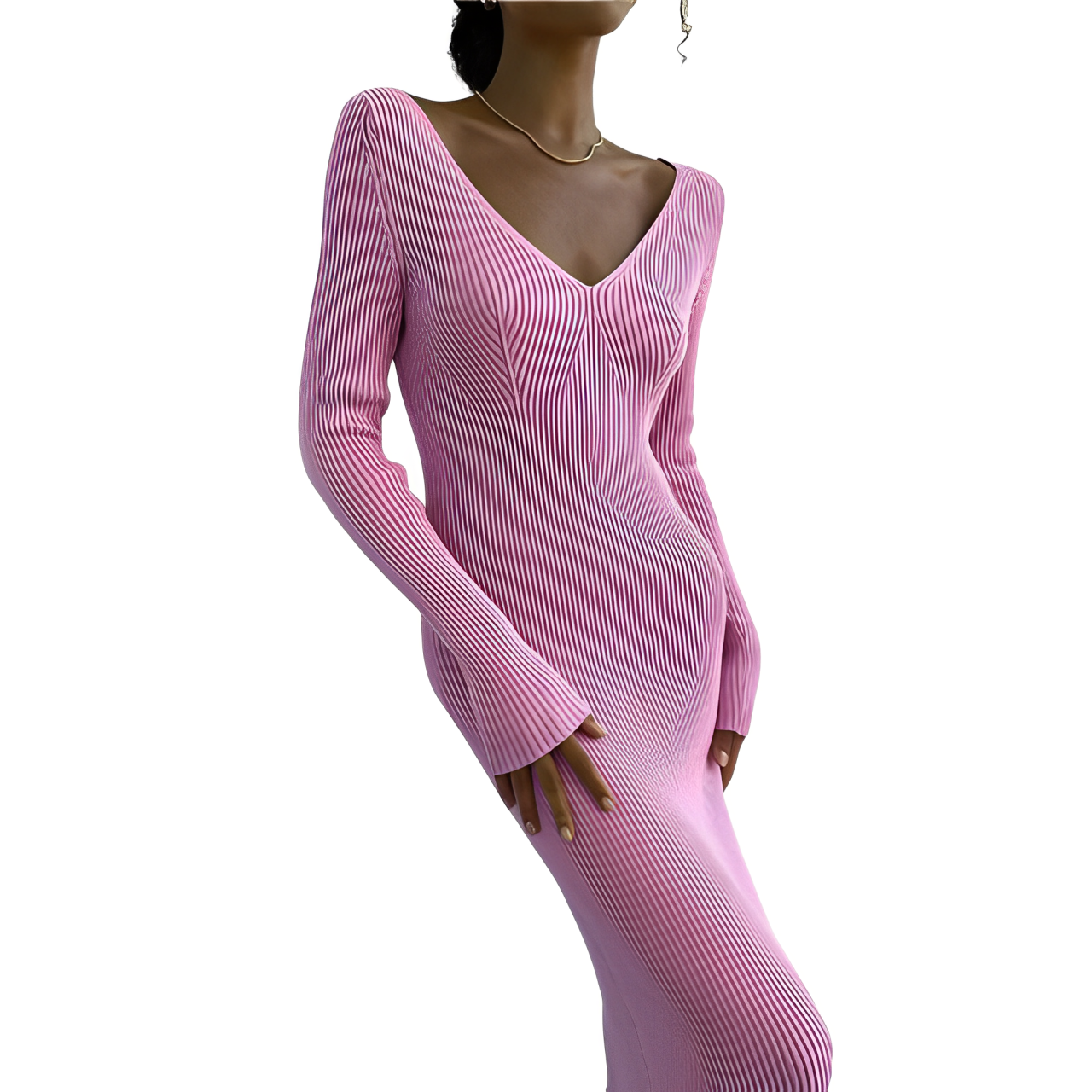 Alva - Strickkleid mit V-Ausschnitt und Rippenmuster