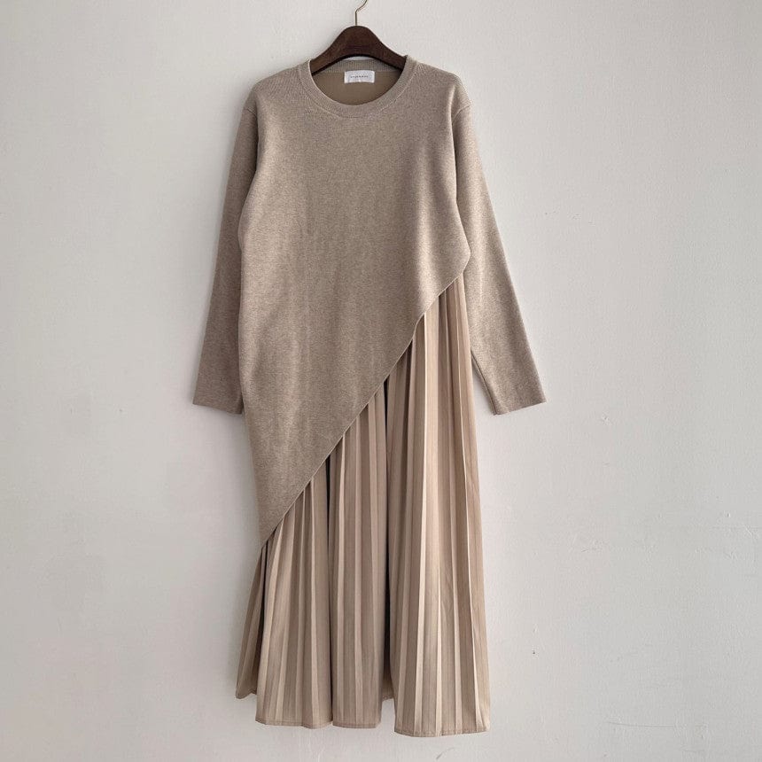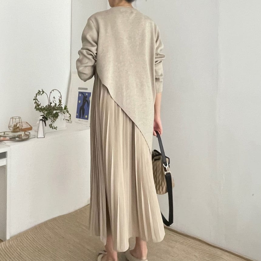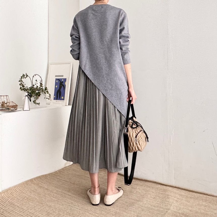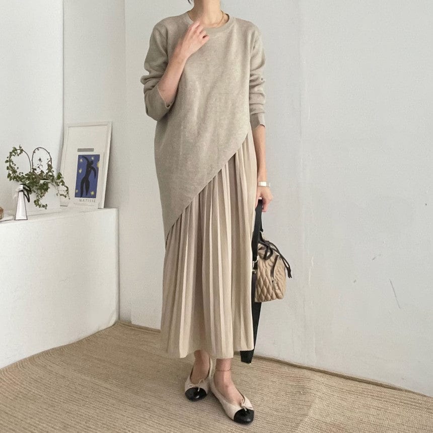 Bringen Sie modernen Flair in Ihre Garderobe mit dem ANGELINA - Elegantes Patchwork Faltenkleid. Dieses einzigartige und raffinierte Design kombiniert einen unregelmäßig gestrickten Pullover mit einem gefälteten Latzkleid und vereint Komfort mit Stil. Ideal, um sich sowohl modisch als auch bequem zu fühlen, ist dieses Set ein absolutes Must-have für Ihre Sammlung!