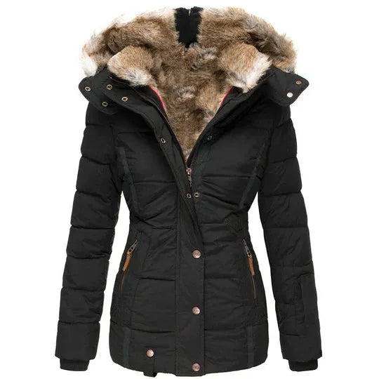 Damen-Wintermantel mit abnehmbarem Kunstfellkragen, warm und stilvoll für die kalte Jahreszeit. Perfekte Kombination aus Komfort und Eleganz.