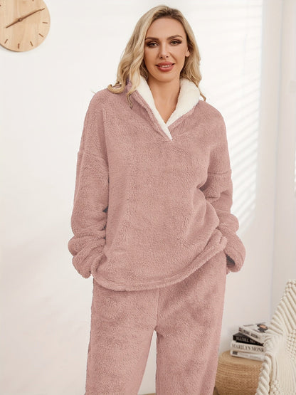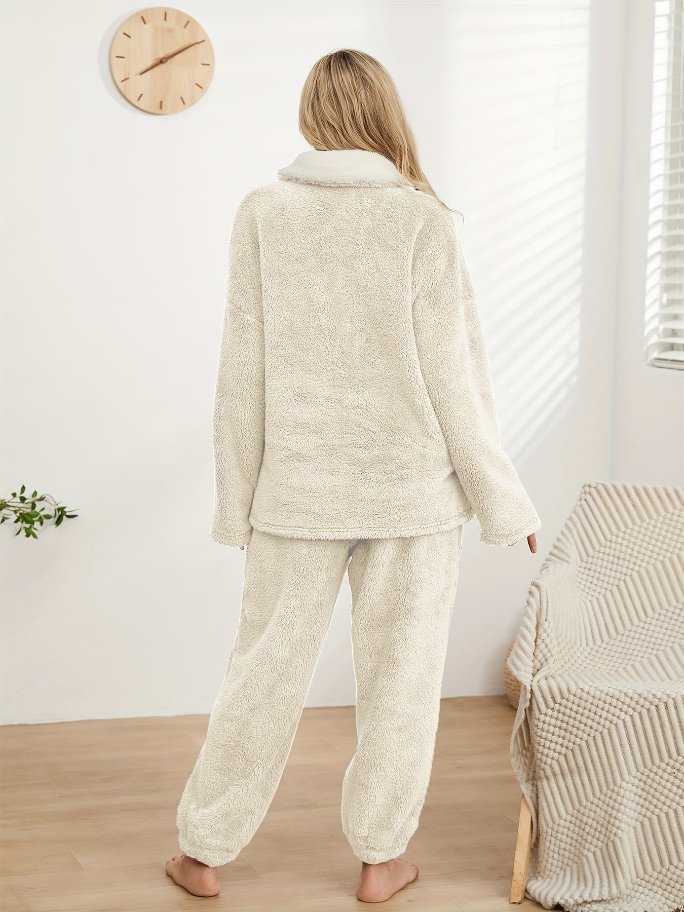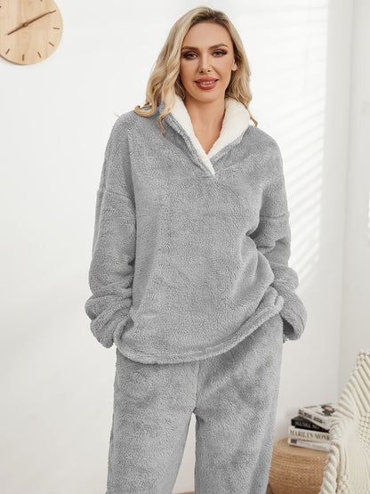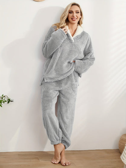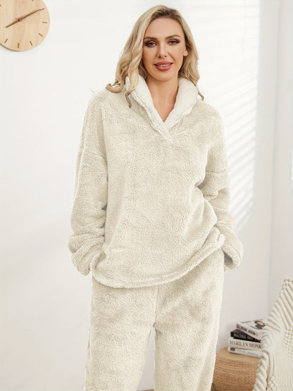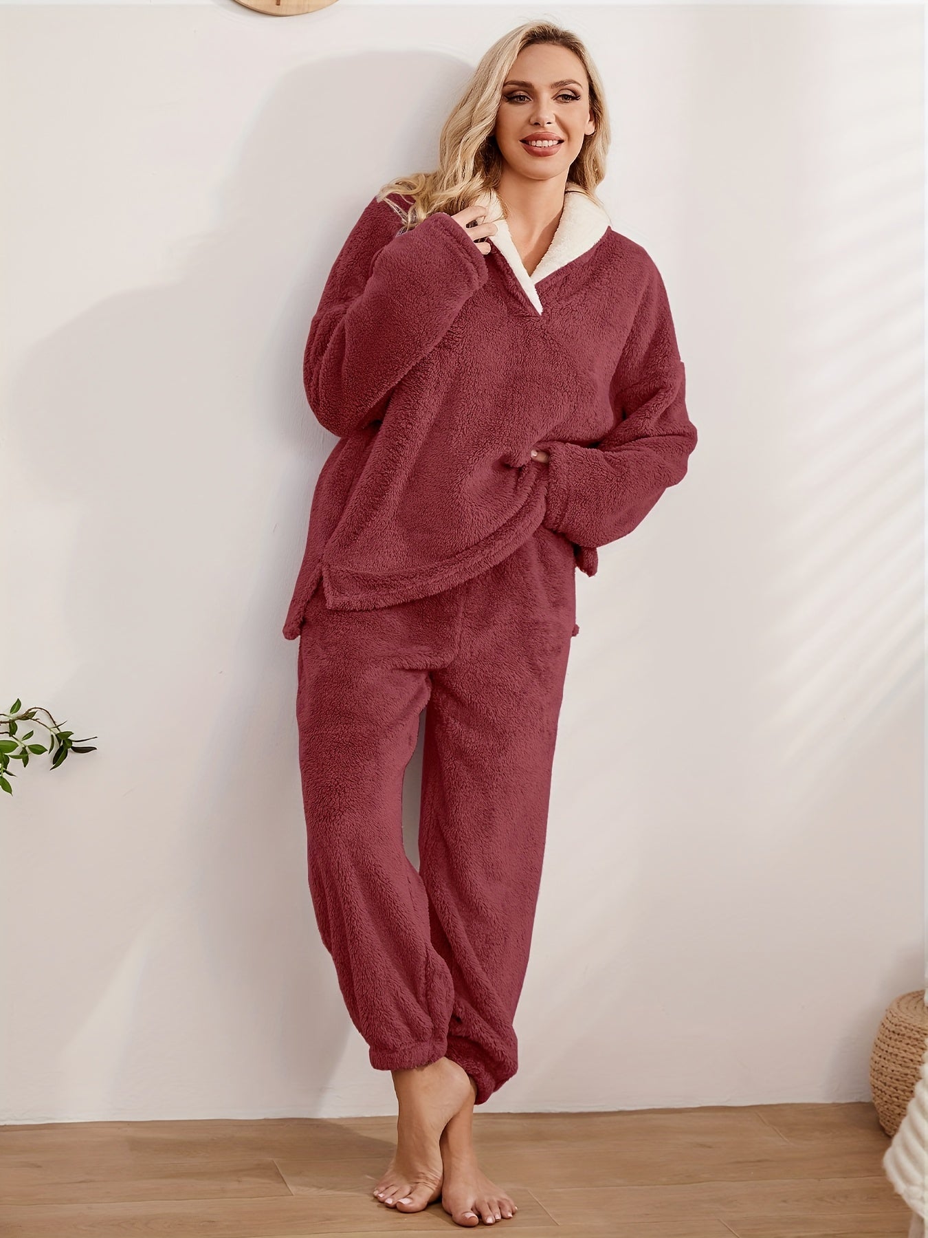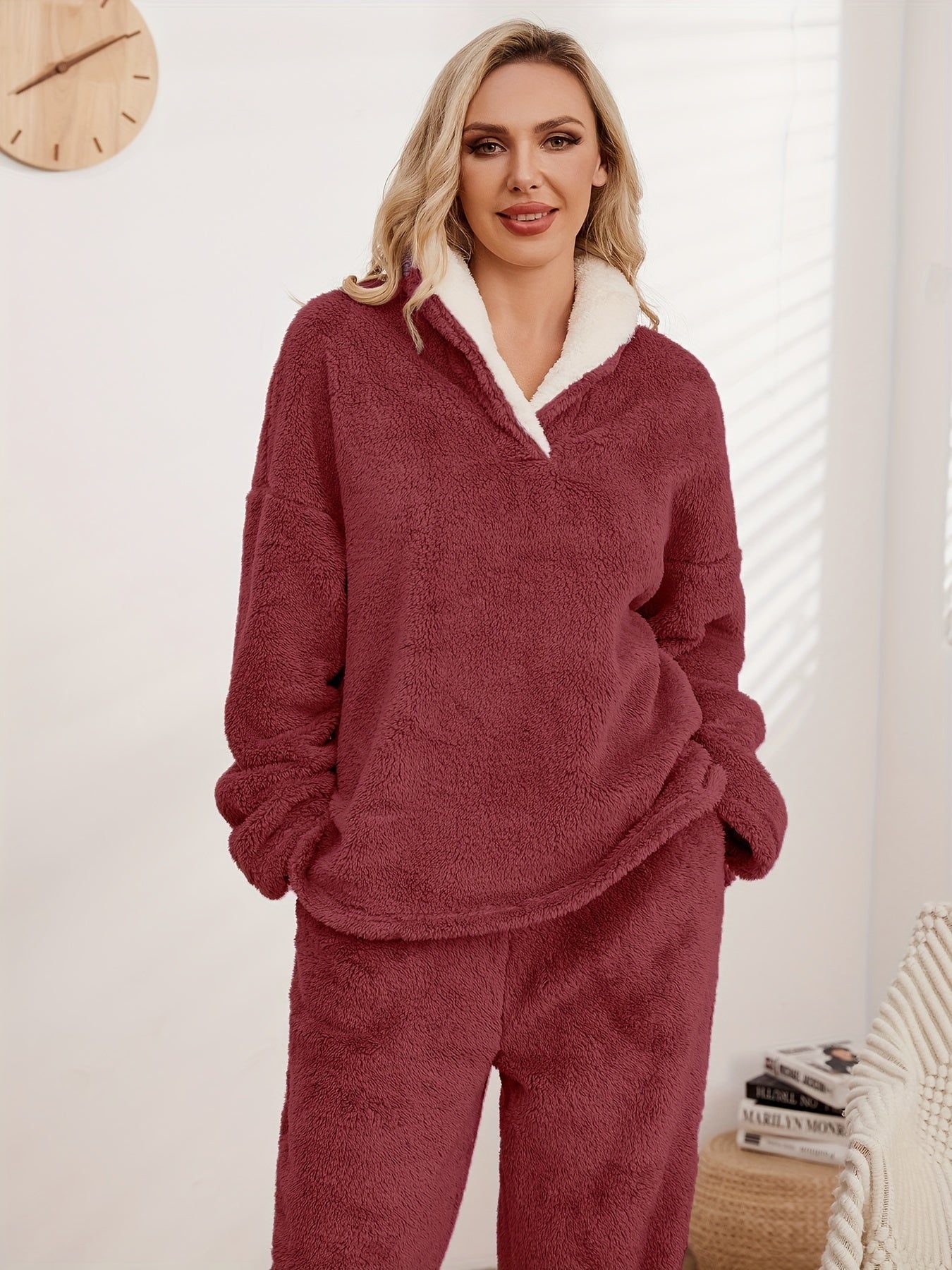 Entdecke das Emma - Elegantes Fleece Lounge-Set, gefertigt aus hochwertigem Polyester. Dieses Lounge-Set bietet nicht nur außergewöhnlichen Komfort, sondern auch ein elegantes Design, das es zu einem unverzichtbaren Bestandteil deiner Heimgarderobe macht. Das weiche Material und die entspannte Passform sind perfekt für gemütliche Abende zu Hause oder als stilvolle Wahl für entspannte Tage.
