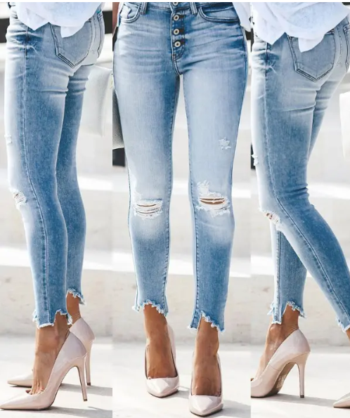 Wir stellen Ihnen Grace's Ripped Cutout Denim Pants für Ihre Frühlings-/Sommergarderobe vor! Diese stylischen Jeans zeichnen sich durch trendige Riss- und Cut-Out-Details aus, die Ihrem Look ein ausgefallenes Flair verleihen. Diese Hose ist perfekt für Freizeitausflüge und besteht aus atmungsaktivem Denim-Stoff, der an warmen Tagen für Komfort und Stil sorgt. Kombinieren Sie sie mit Ihrem Lieblings-T-Shirt oder Tanktop für ein entspanntes und dennoch modisches Ensemble. Werten Sie Ihre Denim-Kollektion mit Grace's Ripped Cutout Denim Pants auf und setzen Sie überall ein Zeichen!