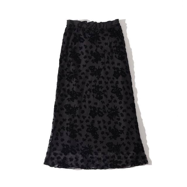 Eleganter Midirock mit einem floralen Spitzenmuster, einem komfortablen elastischen Bund und einer taillierten Silhouette, die Ihre Formen zur Geltung bringt. Der stilvolle schwarze Spitzenüberzug mit Blumenmotiven verleiht dem Rock einen zeitlosen und gleichzeitig modernen Look, der problemlos vom Tages- ins Abendoutfit übergeht.