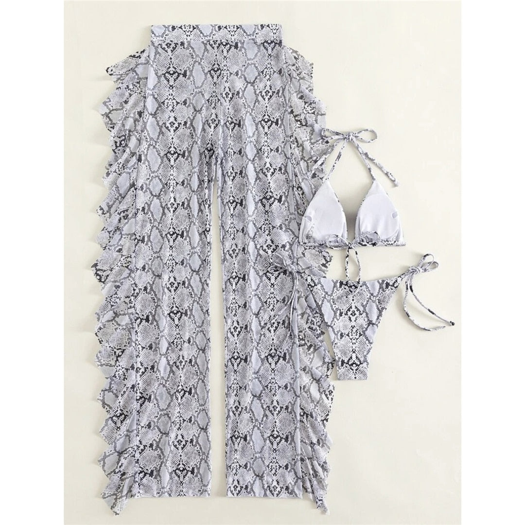 Heidi-Mode | Schlangenprint Rüsch Bikini Satz & Strandhose