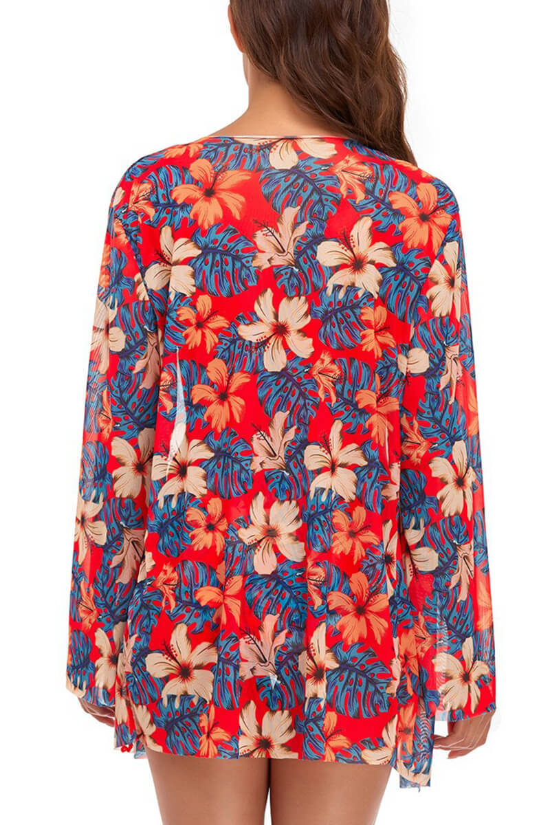 Heidi-Mode | Set aus Bluse und Orangefarbenem Blumen-Bikini
