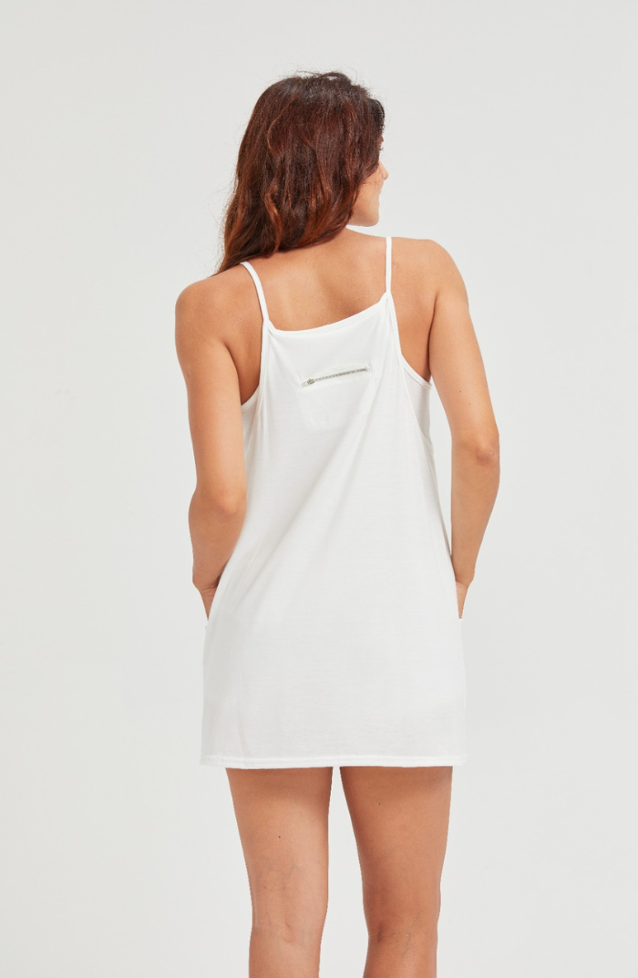 Das Kleid besteht aus einem weichen, atmungsaktiven Material, das sich angenehm auf der Haut anfühlt und maximale Bewegungsfreiheit bietet. Die integrierten Shorts sorgen dafür, dass Sie sich den ganzen Tag über selbstbewusst und sicher fühlen, egal, wie aktiv Ihr Tag ist.