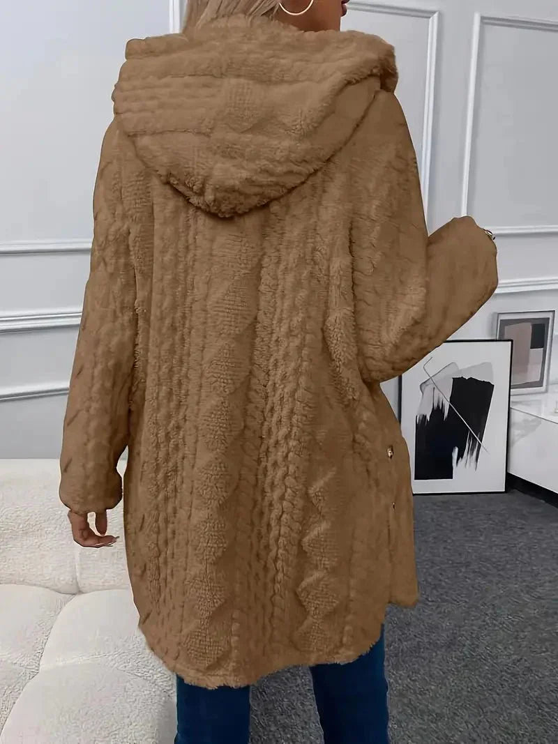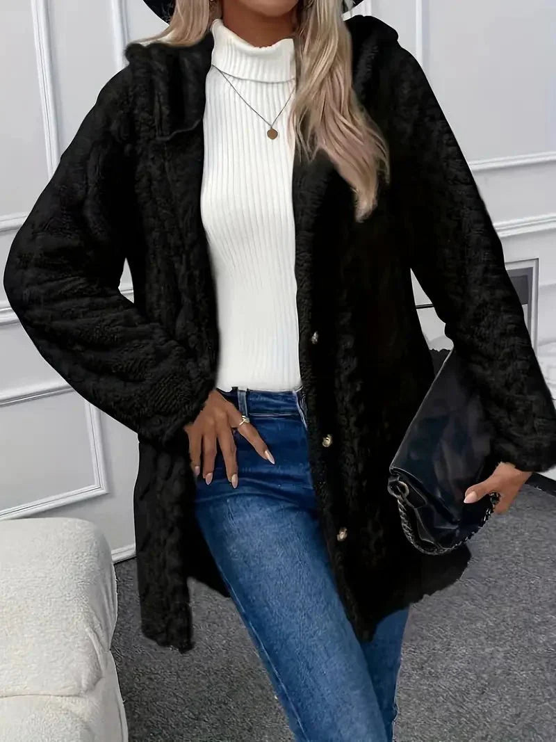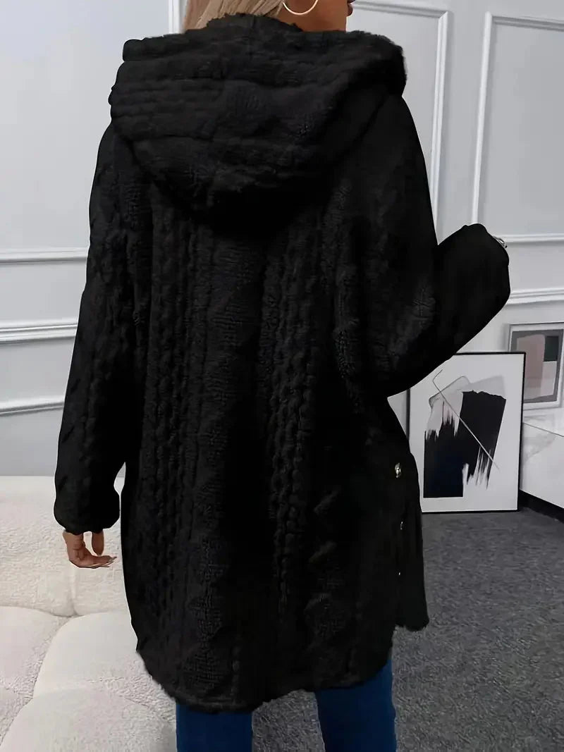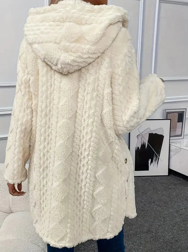 Entdecke den Katja - GlanzWinter Plüschmantel, der mit seinem luxuriösen Design und kuschelweichen Materialien ideal für kalte Wintertage ist. Dieser Mantel ist nicht nur ein modisches Statement, sondern bietet auch höchsten Komfort und Schutz gegen die Kälte.