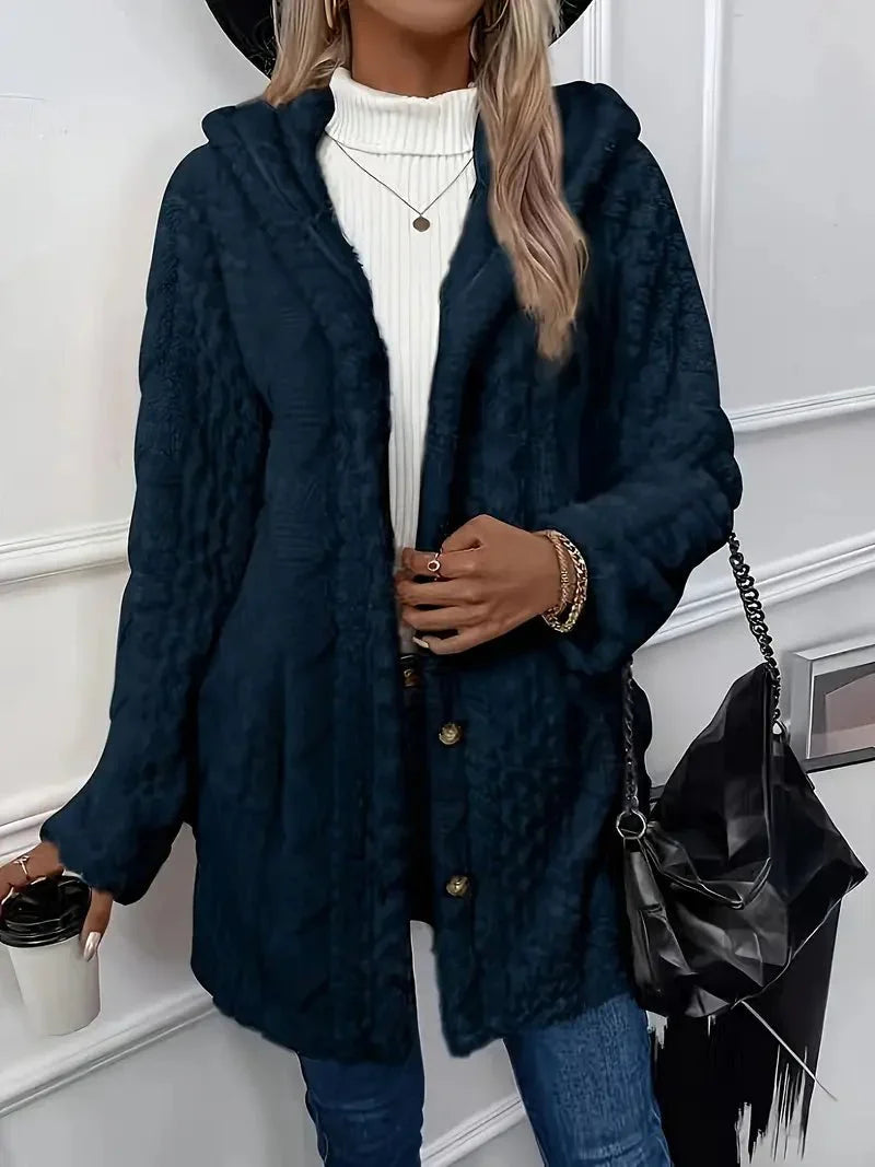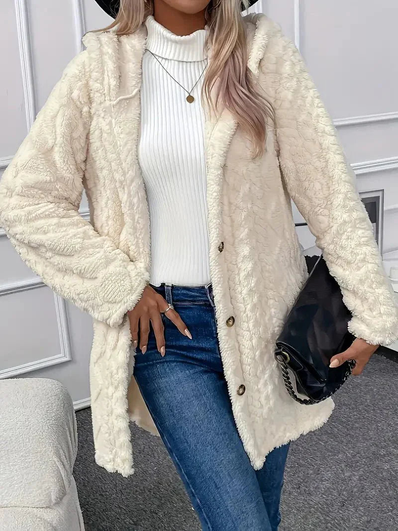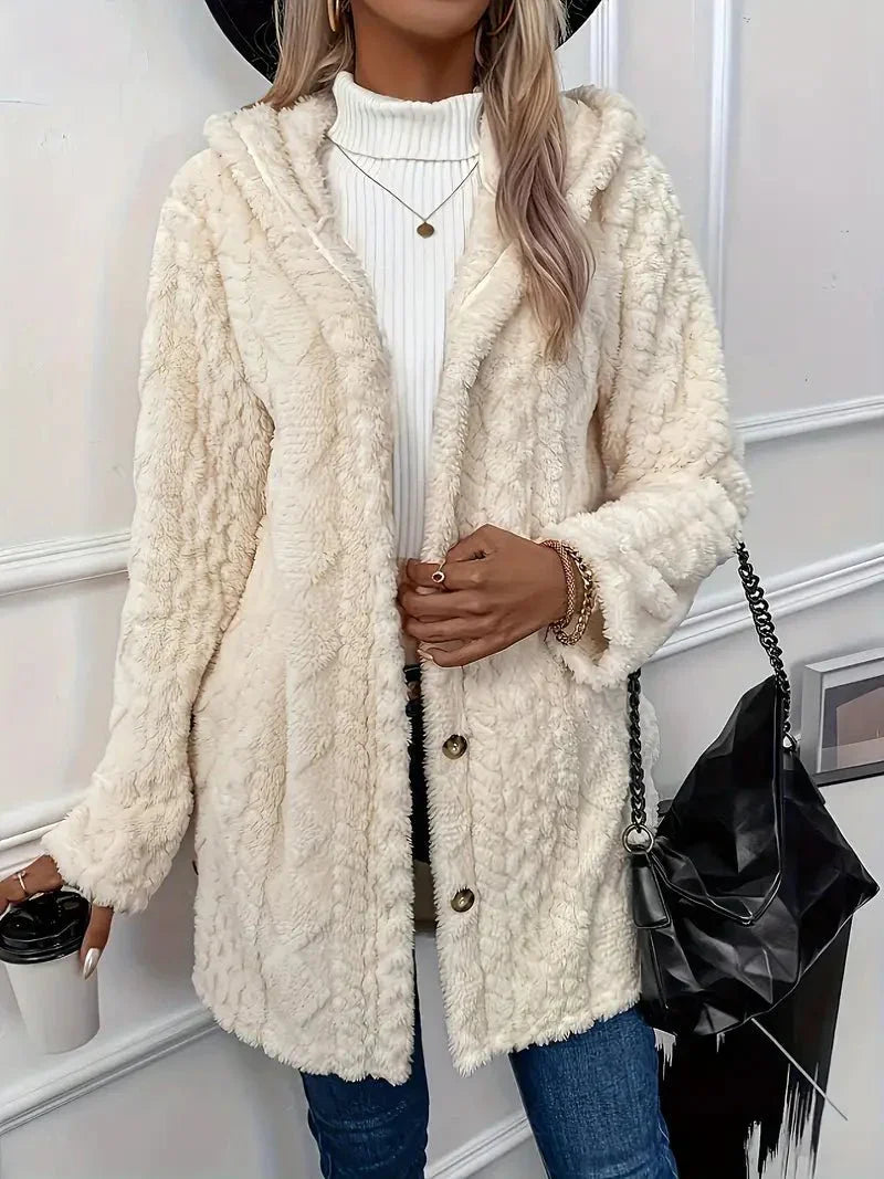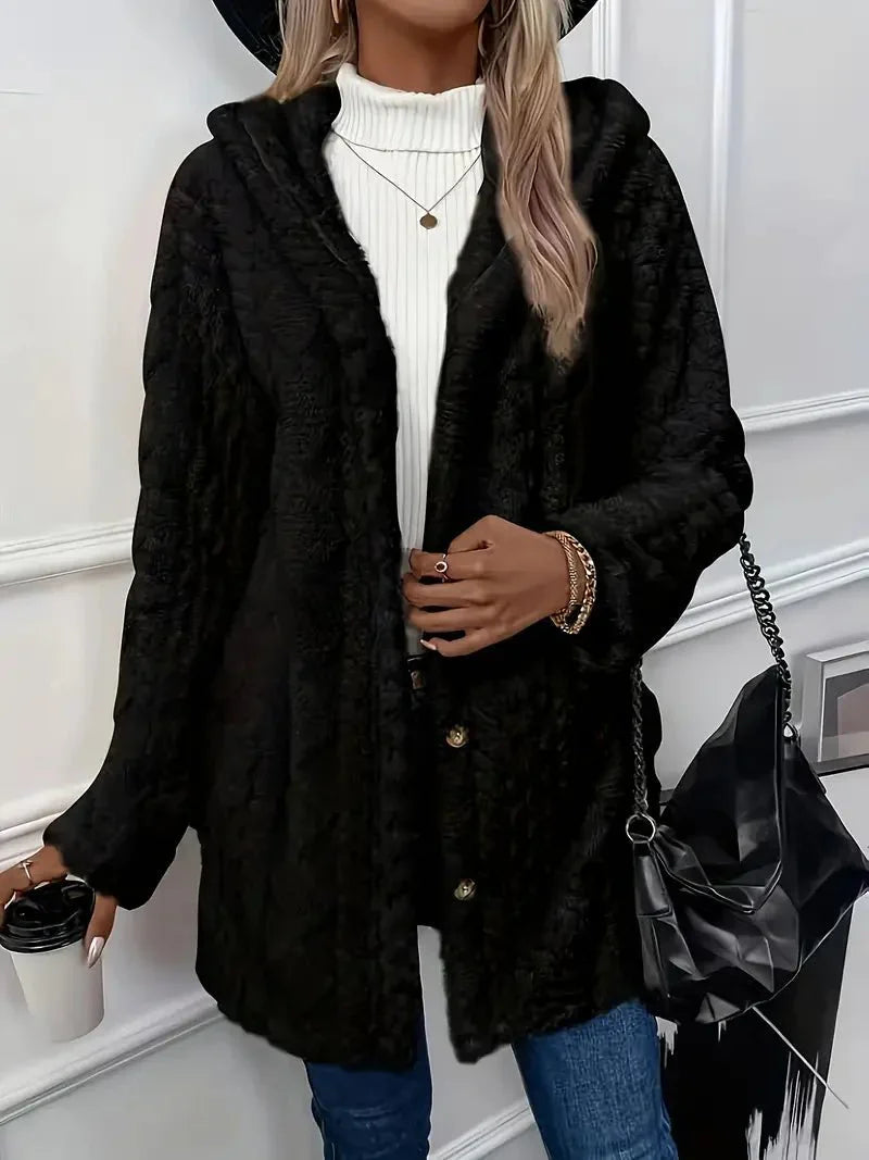 Entdecke den Katja - GlanzWinter Plüschmantel, der mit seinem luxuriösen Design und kuschelweichen Materialien ideal für kalte Wintertage ist. Dieser Mantel ist nicht nur ein modisches Statement, sondern bietet auch höchsten Komfort und Schutz gegen die Kälte.
