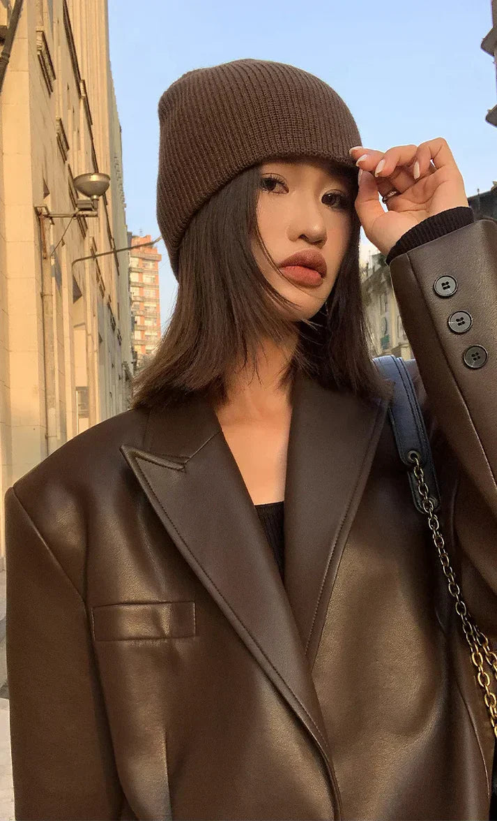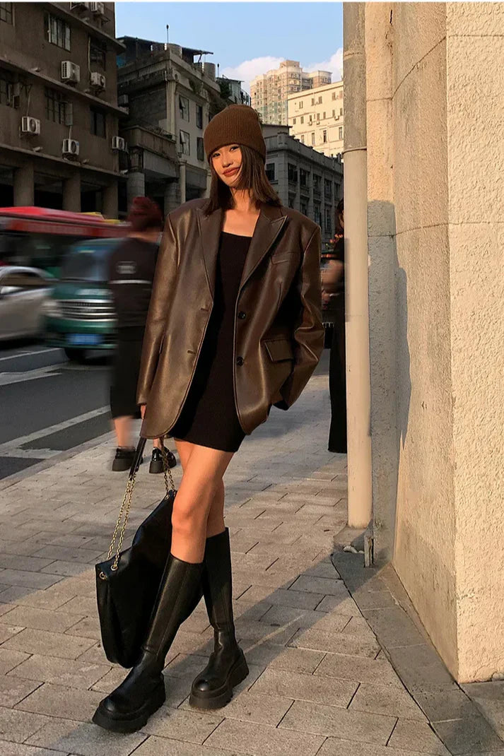 Lili – Langarm- Blazer aus PU-Leder für Damen : Eine stilvolle Wahl mit einem kantigen Touch für jeden Anlass.