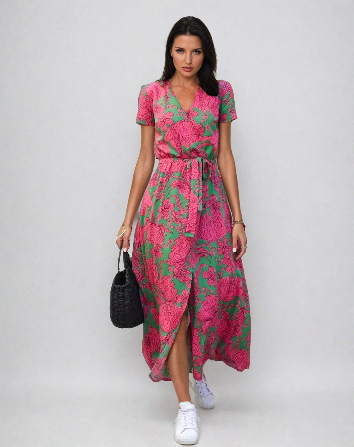 Erlebe die perfekte Kombination aus Stil und Komfort mit dem blumigen Sommerkleid von Floriluxe. Weich, schlankmachend und schmeichelhaft – dieses Kleid wird von all unseren Kunden geliebt! Es betont deine Figur und verleiht deinem Stil das gewisse Etwas. Bringe deine Proportionen ins Gleichgewicht und fühle dich einfach großartig!