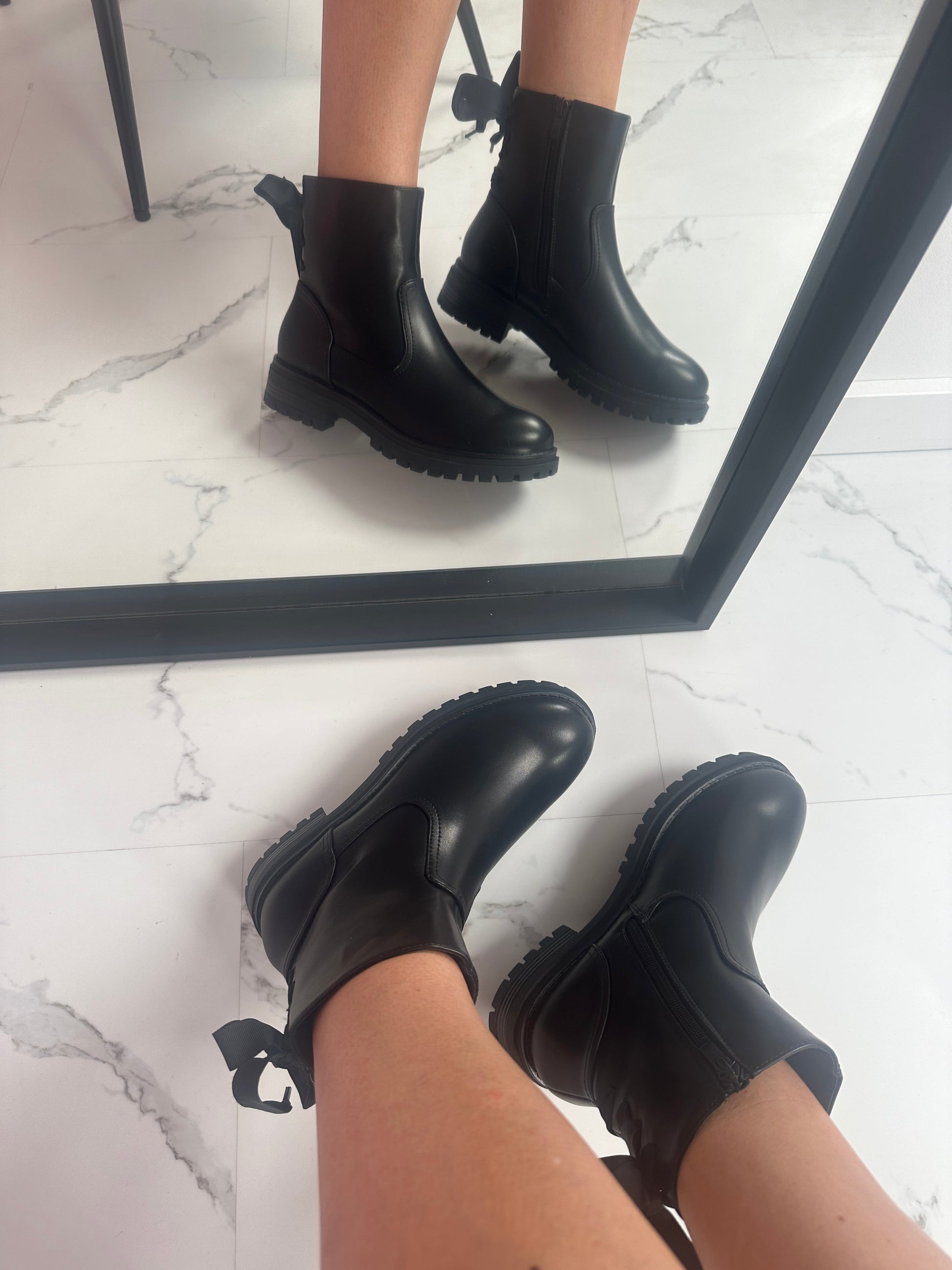 Entdecke die Liya - Stiefel mit Schleifen-Detail, die perfekte Kombination aus Eleganz und Verspieltheit. Diese Must-Have-Stiefel sind mit einer bezaubernden Schleife verziert und bringen eine feminine Note in jedes Outfit. Sie eignen sich ideal für den Alltag oder besondere Anlässe, bei denen du stilvoll und bequem unterwegs sein möchtest.