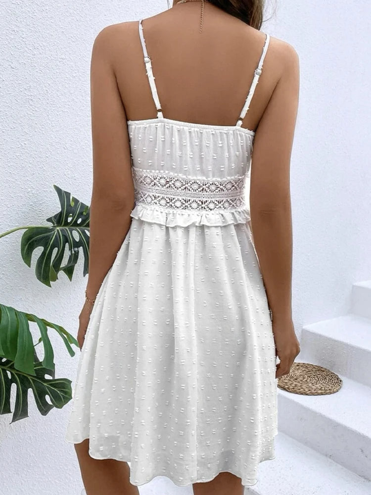 Bringen Sie stilvolle Eleganz in Ihre Sommergarderobe mit diesem bezaubernden weißen Kurzkleid mit raffinierten Details. Dieses Kleid ist die perfekte Wahl für verschiedene Anlässe – sei es ein entspannter Tag in der Stadt, ein Picknick im Park oder eine sommerliche Gartenparty. Die edlen Details und die schmeichelhafte Passform verleihen Ihrem Look eine feminine und zugleich elegante Note. Gefertigt aus hochwertigen Materialien, bietet es maximalen Tragekomfort und Bewegungsfreiheit.