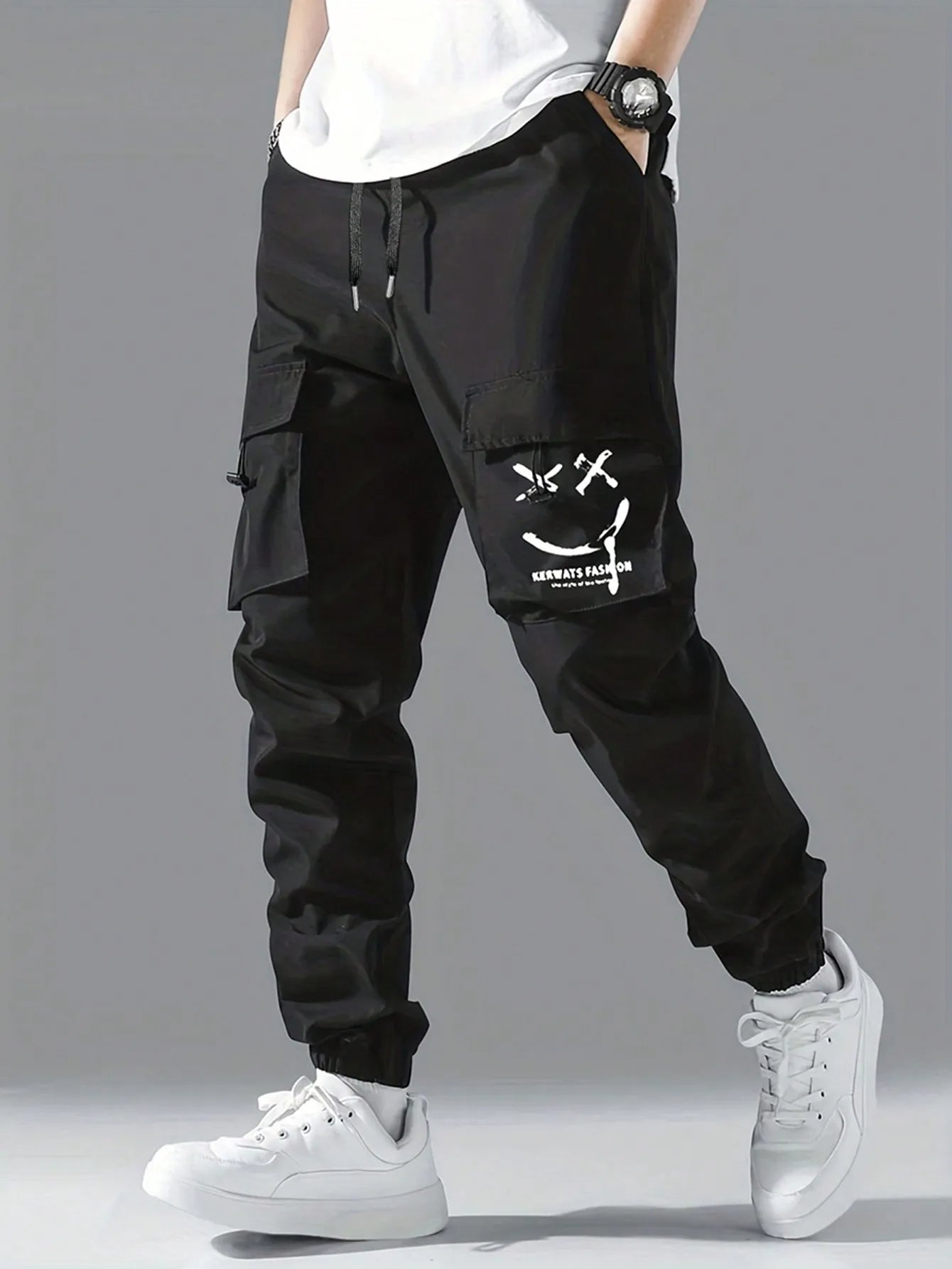 - Stilvolles Design: Mit einem trendigen lächelnden Gesichtsmuster, das diese Jogger zu einem auffälligen Teil Ihrer Garderobe macht.