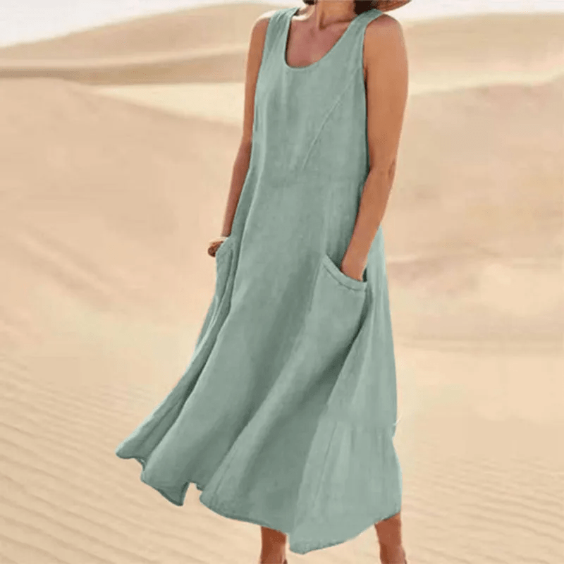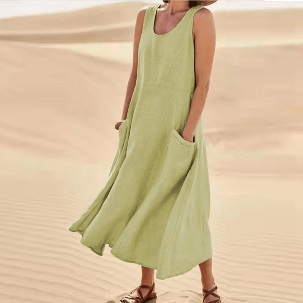 Melisa | Ärmelloses Kleid aus Baumwolle und Leinen mit Tasche
