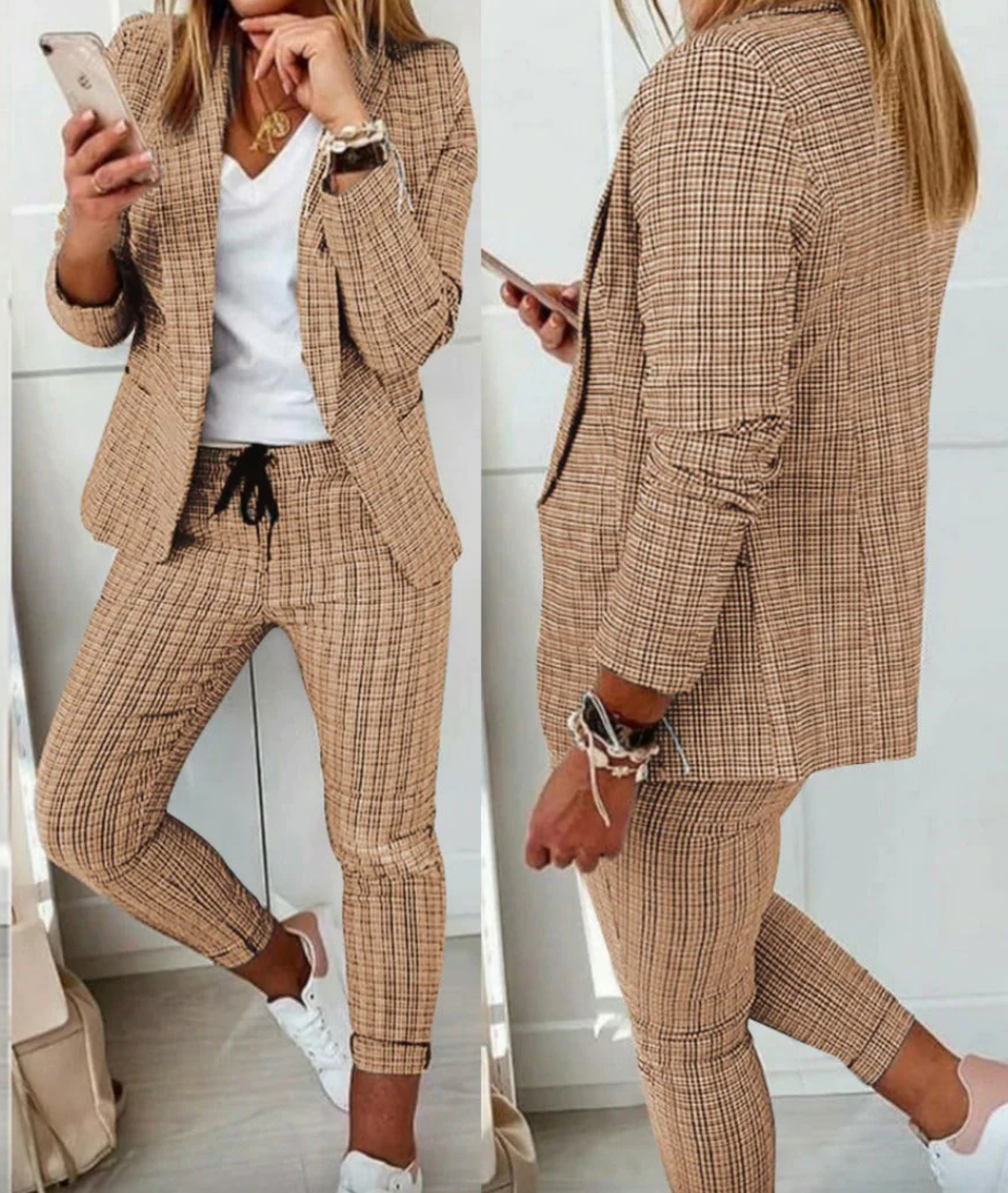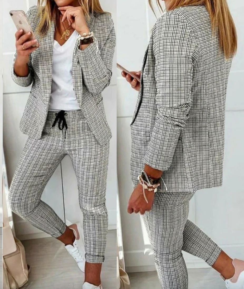 Wir präsentieren MONICA, den Inbegriff von hochwertigem Stil für Business und Freizeit. Dieser elegante Anzug ist sorgfältig gefertigt, um Ihre Garderobe aufzuwerten und nahtlos von beruflichen Meetings bis hin zu gehobenen gesellschaftlichen Veranstaltungen zu passen. Mit Liebe zum Detail und einer maßgeschneiderten Passform strahlt MONICA Selbstvertrauen und Raffinesse aus. Das vielseitige Design ermöglicht die Kombination zu verschiedenen Anlässen und sorgt dafür, dass Sie überall einen bleibenden Eindruck hinterlassen. Treten Sie ein in MONICA und verkörpern Sie mühelos Eleganz in jedem Aspekt Ihres Lebens.