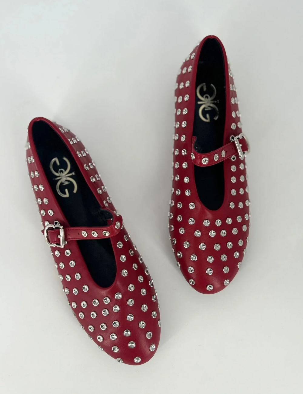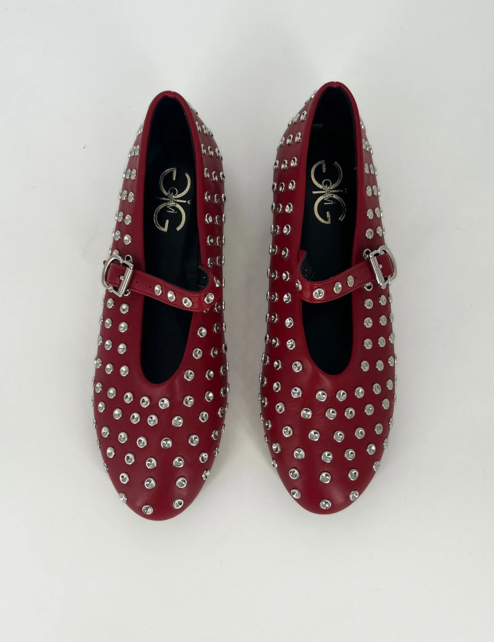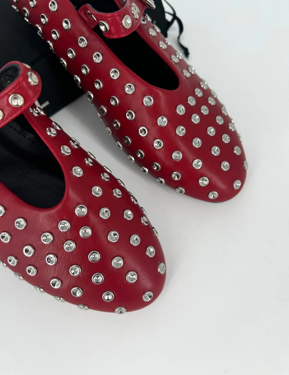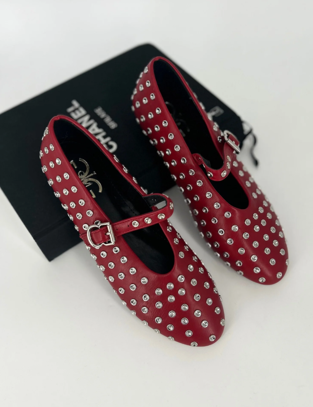 Ergänze deine Schuhsammlung mit den Pauline - SuedeGlanz Ballerina mit Nieten und genieße stilvollen Komfort bei jedem Schritt!