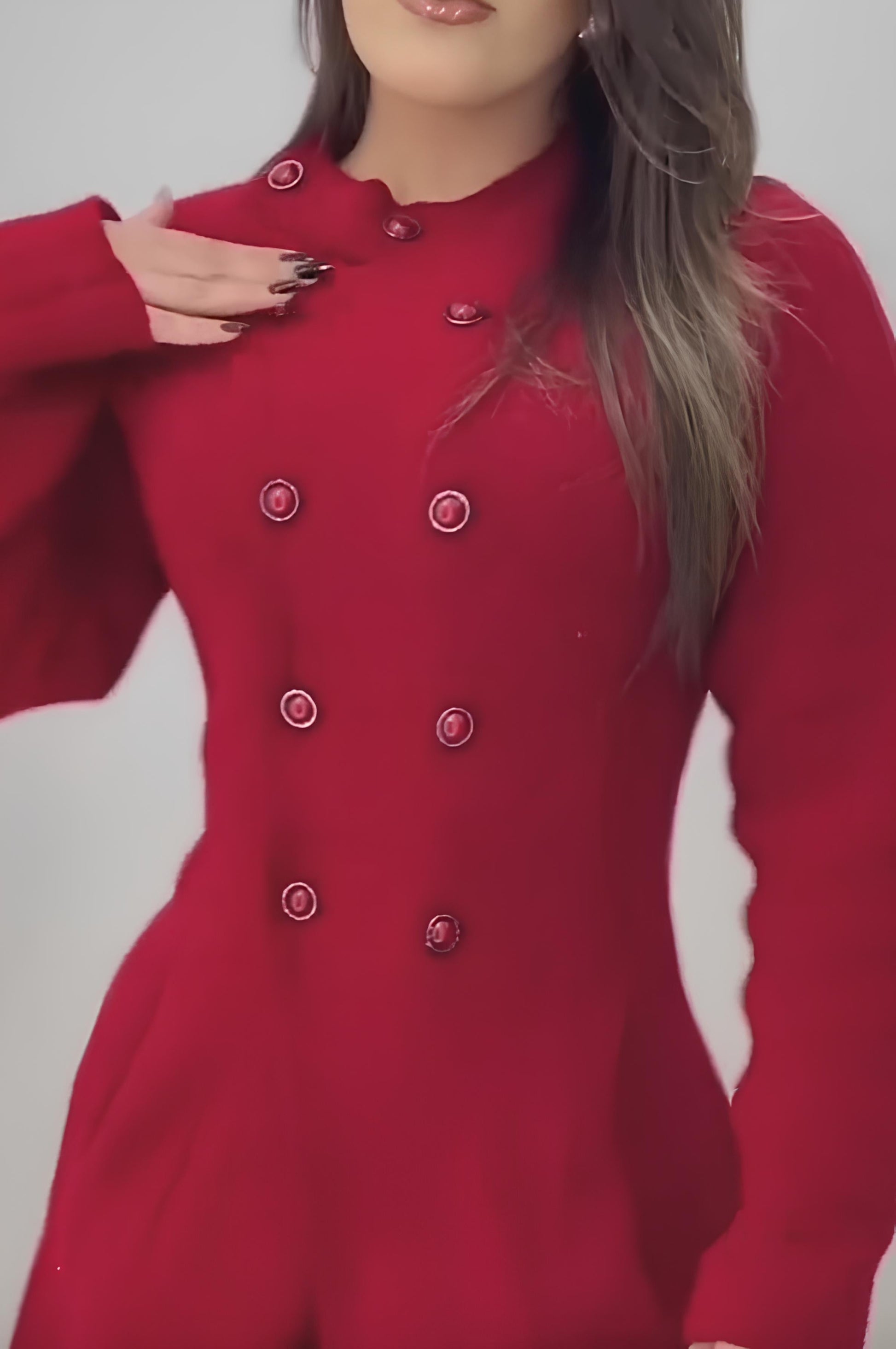 Roter Mantel mit doppelter Knopfleiste – Emilia