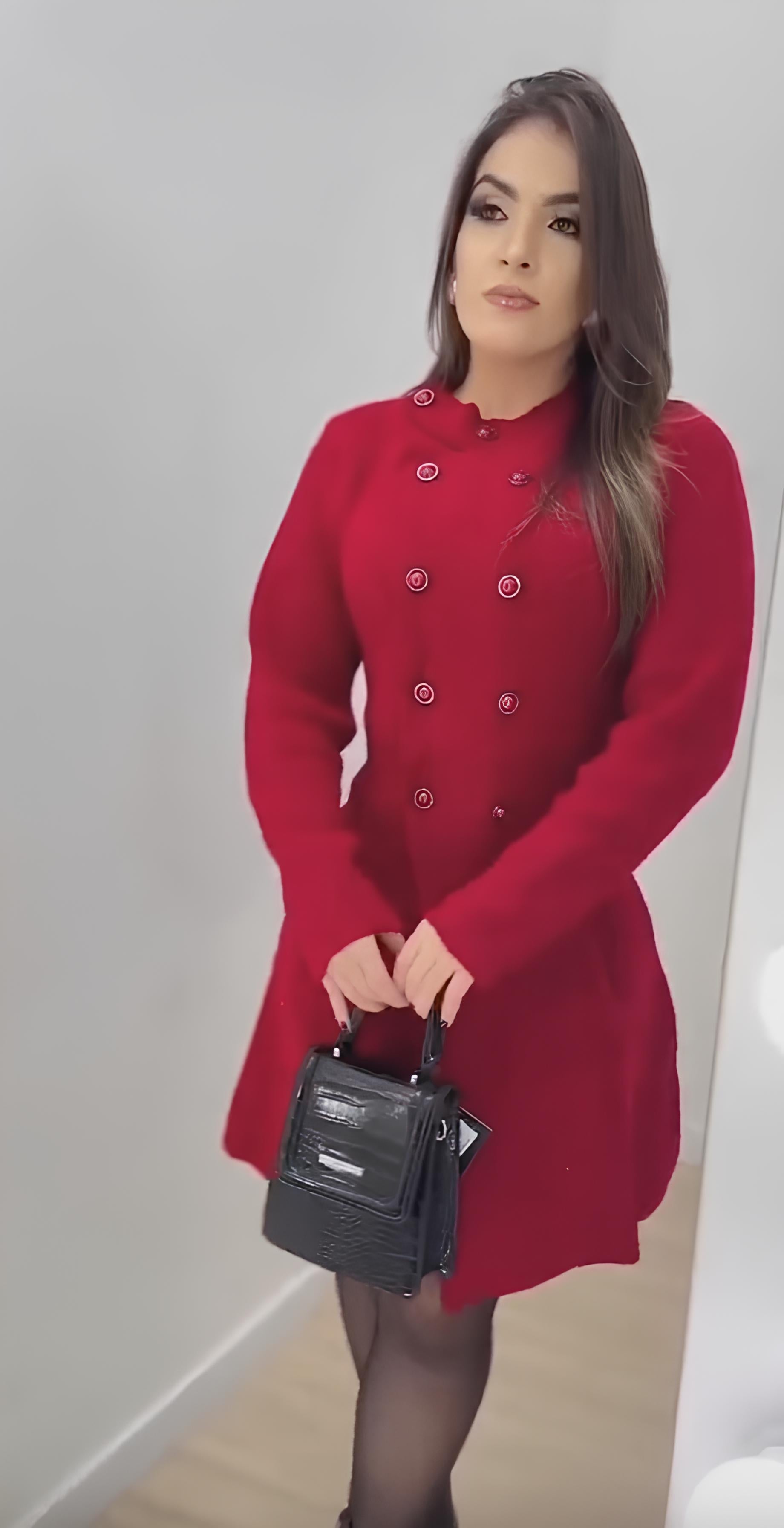 Eleganz und Stil für kalte Tage – unser roter Mantel! Dieser Mantel in einem kräftigen Rotton ist der perfekte Begleiter für die kalten Monate. Mit seiner doppelten Knopfleiste und dem taillierten Schnitt sorgt er für einen femininen und eleganten Look, der sich sowohl im Alltag als auch zu besonderen Anlässen sehen lassen kann.