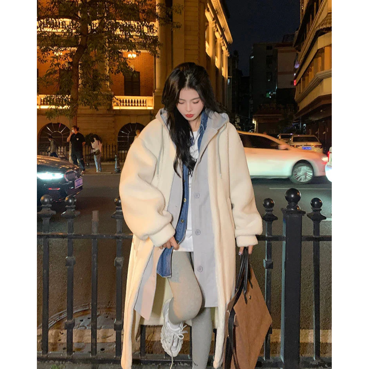 UMARMEN SIE DIE WÄRME – Lernen Sie Sophie kennen, Ihre Begleiterin für die kalten Tage. Dieser Kapuzenmantel aus Lammwolle von Floriluxe ist voller Luxus und Wärme und macht jeden Schritt in der Kälte bequem und stilvoll.