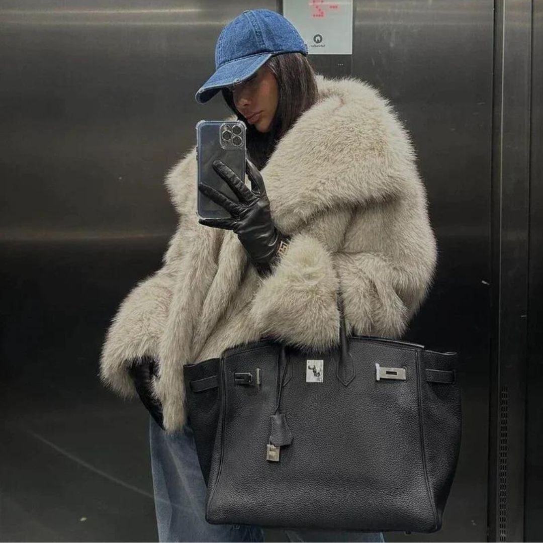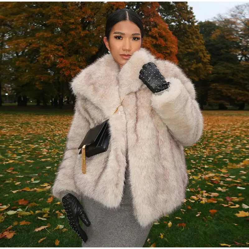 Unvergleichlicher Komfort und Stil: Die luxuriöse Kunstpelzjacke in weichem Taupe